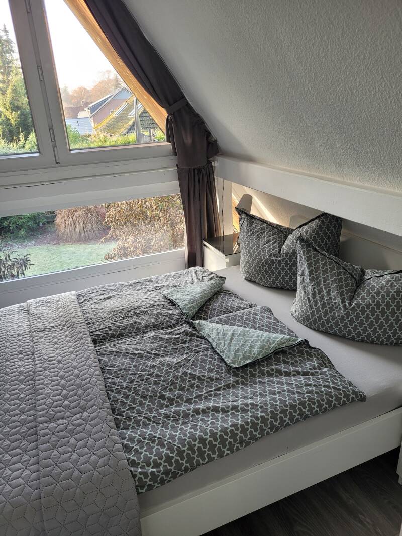 Hier bitten wir unsere Gäste immer, sich die Bilder des Hauses genau anzuschauen und abzuwägen, ob die Treppe für alle Familienmitglieder geeignet ist. Oben ist ein Treppenschutzrollo angebracht, um auch den kleinsten eine Sicherheit im Obergeschoss zu geben.
